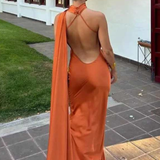 Cette robe de soirée longue séduit par son dos nu et son col drapé asymétrique, parfaits pour mettre en valeur les épaules. Son tombé fluide et sa coupe ajustée à la taille soulignent la féminité tout en restant chic et moderne. Une pièce idéale pour mariages, cocktails et événements habillés.