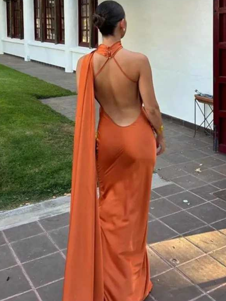 Élégance intemporelle : la robe longue dos nu asymétrique